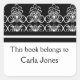 Pegatina Cuadrada Personalizado Bookplate-Black White Swirls Pattern