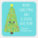 Festividades pegatinas azules brillantes con un lindo árbol de Navidad kawaii. Crea tu propia colección personalizada agregando tu propio mensaje y nombre.