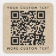 Pegatinas cuadrados con tu código QR y texto personalizado, una línea en la parte superior y otra en la parte inferior de una imagen impresa El papel Kraft tiene un aspecto de fondo. Cambiar fuentes y colores de fuente, mover y cambiar el tamaño de los elementos con la herramienta de diseño. Síguenos en Facebook: @business stalery o Instagram: @business.perfectlycustom para más productos, noticias, ventas y más.
