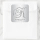 Pegatina Cuadrada Personalizado Elegante Plata Monogramada Letra ini