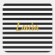 Pegatina Cuadrada Personalizado Faux Gold Script en franjas blancas