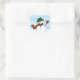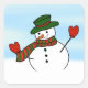 Pegatina Cuadrada Personalizado lindo Snowman con Gorra verde y Mitt