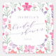 Personalizado Cute rosa y morado Flores acuáticas patrón Bridal Shower Pegatina cuadrado