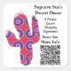 Personalizado Código QR Pequeña Empresa Promo Llamado a la acción pegatinas y etiquetas de productos. Saguaro cactus diseño artístico al estilo suroeste para promociones de pequeñas empresas o información de medios sociales. Simplemente personalice el nombre comercial y el tagline, inserte su propio código qr y sus suministros comerciales únicos estén listos. Los gráficos de arte cactus hacen grandes sellos para sobres o etiquetas de productos para tiendas, restaurantes y otros negocios del suroeste.