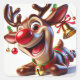 Un reno personalizado alegre rodeado de decoraciones navideñas coloridas, como adornos, dulces y vegetación festiva. Perfecto para proyectos de temática vacacional, promociones de temporada o saludos alegres.