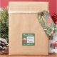 Un alegre personalizado Santa está señalando el nombre del destinatario. En el fondo verde, rellena con quién es el regalo y de quién es. Deja vacío si quieres rellenar los nombres a mano.