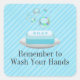 Pegatina Cuadrada Personalizado Texto Jabón azul turquesa Lávese las