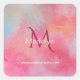 Pegatina Cuadrada Personalized Name + Monogram Pink Watercolor Ink