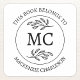 Pegatina Cuadrada Personalized This Book Belongs to Monogram