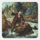 Pegatina Cuadrada Pesca de trucha rota - Un momento angustioso, 1862