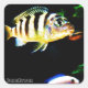Pegatina Cuadrada Pescado Cichlil Africano Negro y Amarillo