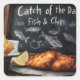 Pegatina Cuadrada Pescado y patatas clásicas y Ilustracion de pizarr