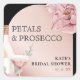 Pegatina Cuadrada Pétalos y Prosecco Despedida de Soltera Negro y Do