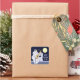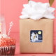 Pegatina de cumpleaños inspirado en una tarjeta de cumpleaños vintage con un payaso Pierrot dulce sentado bajo la luna, cantando y tocando el laúd.