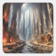 Los pilares de piedra altísima sustentan un techo de tierra sobre una comunidad subterránea de gente que vive en una enorme cueva, con un río, pasarelas y fuente de energía.