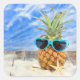 Pegatina Cuadrada piña tropical con gafas de sol