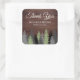 Pegatina Cuadrada Pine Trees Rustic Wood Winter Wedding Gracias