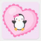 Pegatina Cuadrada Pingüino Chica lindo en un gran corazón rosa claro