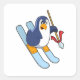 Pegatina Cuadrada Pingüino como esquiador con esquí