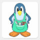 Pegatina Cuadrada Pingüino como peluquero con tijeras y Razor