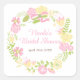 Beautiful Pink and Yellow Floral Wreath Bridal Shower sticker An ideal way to impress your guests when you hand around those food bites and thanking your guests for attending your function. The text can be changed to suit your own requirements.