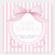 Pegatina Cuadrada Pink Bow Girl Coquette Striped Baby Shower