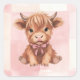 Pegatina Cuadrada Pink Checkered Highland Cow Cute Gift Wrap