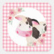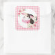 Pegatina Cuadrada Pink Gingham Cow Floral