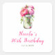 Pegatina Cuadrada Pink Peonies Mason Jar Cumpleaños
