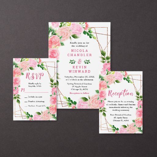 Pink Roses with Foliage WeddingDiseñado por Nicola Winyard