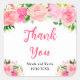 Pegatina Cuadrada Pink Roses with Foliage Wedding Thank You
