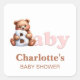 Pegatina Cuadrada Pink Teddy Bear Baby Shower