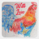 Pegatina Cuadrada Pintado de color rojo gallo con amor