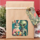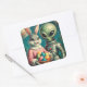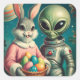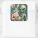 Pegatina Cuadrada Pintura antigua de Alien y Easter Bunny Kitsch
