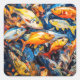 Un ilustracion digital de una pintura al óleo de muchos peces al estilo del expresionismo.