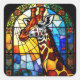 Pegatina Cuadrada Pintura de animales de la jirafa de vidrio con man