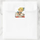 Pegatina Cuadrada Pintura de gato de Chica de cumpleaños retro