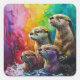 Una representación digital de una pintura de una familia de nutrias de una manera artística.