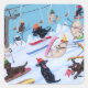 Pegatina Cuadrada Pintura de ladrones de invierno que se divierten e