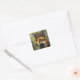 Pegatina Cuadrada Pintura de un zorro rojo en una corona