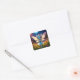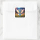 Pegatina Cuadrada Pixie Robot Ballerina bailando en flores silvestre
