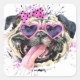 Este diseño presenta un lindo retrato de un pug con gafas de sol rosadas en el corazón y una proa rosa con un estilo de acuarela llamativa.