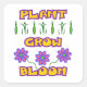 Pegatina Cuadrada Plant Groom Bloom Cita Flores rosadas Texto amaril