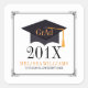 Pegatina Cuadrada Plantilla de Gorra de graduación en blanco y negro