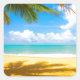 Pegatina Cuadrada playa paradisíaca de palmeras de arena del mar sol