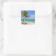 Pegatina Cuadrada Playa Tropical Y Palmeras