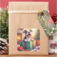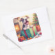 Pegatina Cuadrada Playful Pitbull Opening Christmas Gifts Holiday