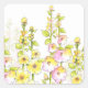 Pegatina Cuadrada Pluma rosa amarilla y campo acuarela de Hollyhocks