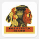 Imagen de la etiqueta del equipaje de época para Pocatello, Idaho con un retrato nativo americano.