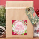 Los pegatinas cuadrados personalizados de Feliz Navidad cuentan con modernas y elegantes flores de invierno y una poinsettia rosa con su nombre y saludo con letras de moda. COINCIDIENDO con los artículos de nuestra tienda.